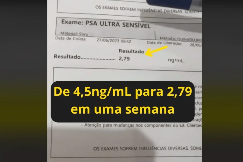 Após fazer o uso dessa fórmula, a grande maioria dos clientes que refizeram seus exames tiveram um resultado excelente! O nível de PSA deles caiu de 14,5 ng/mL na média para 4,0 ng/mL em poucas semanas de acompanhamento.